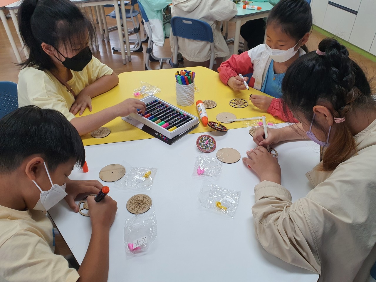 2. 나만의 팽이를 만들고 레이저마킹기를 활용하여 그림과 이름을 새겨보는 활동을 했습니다.