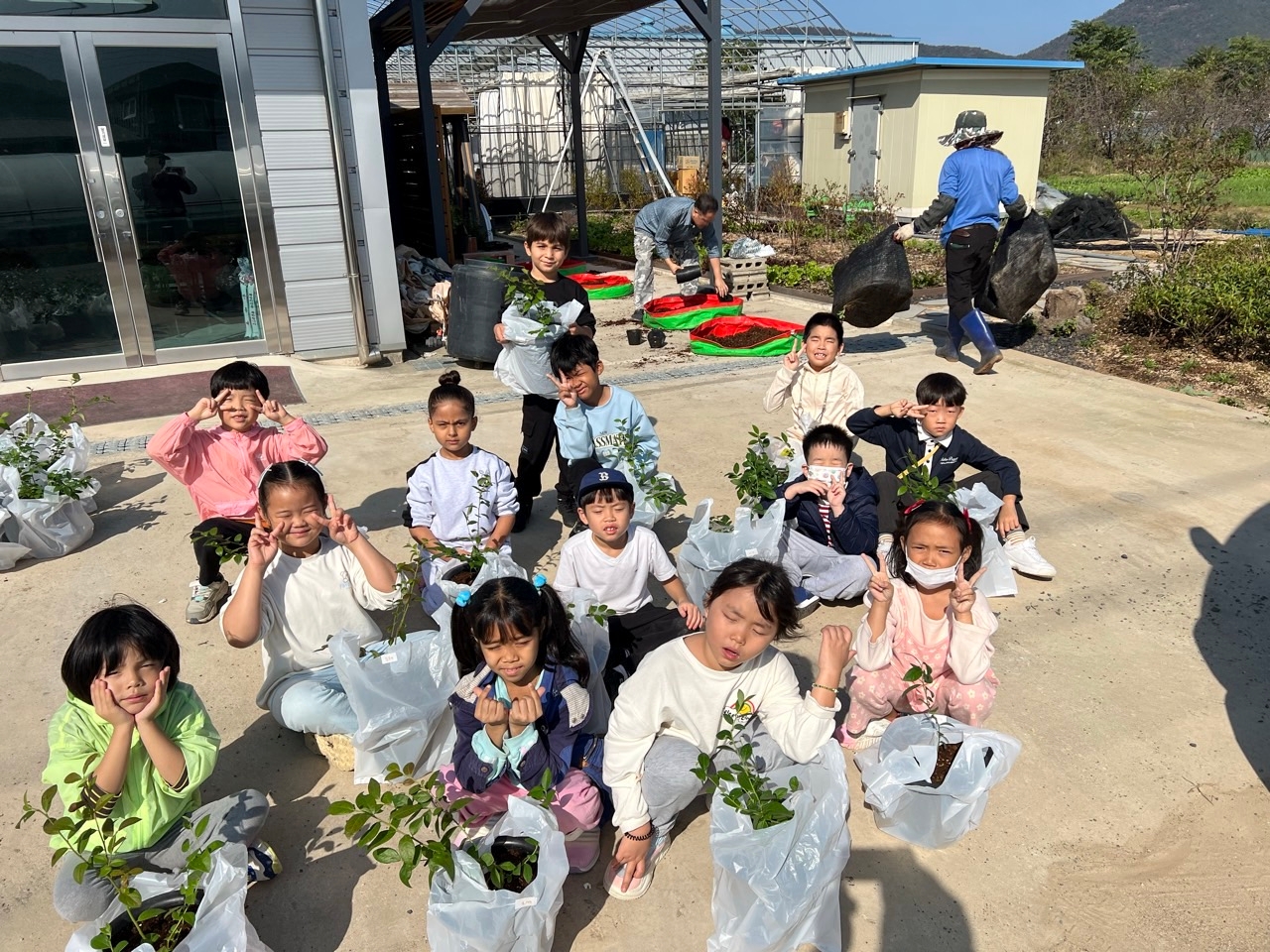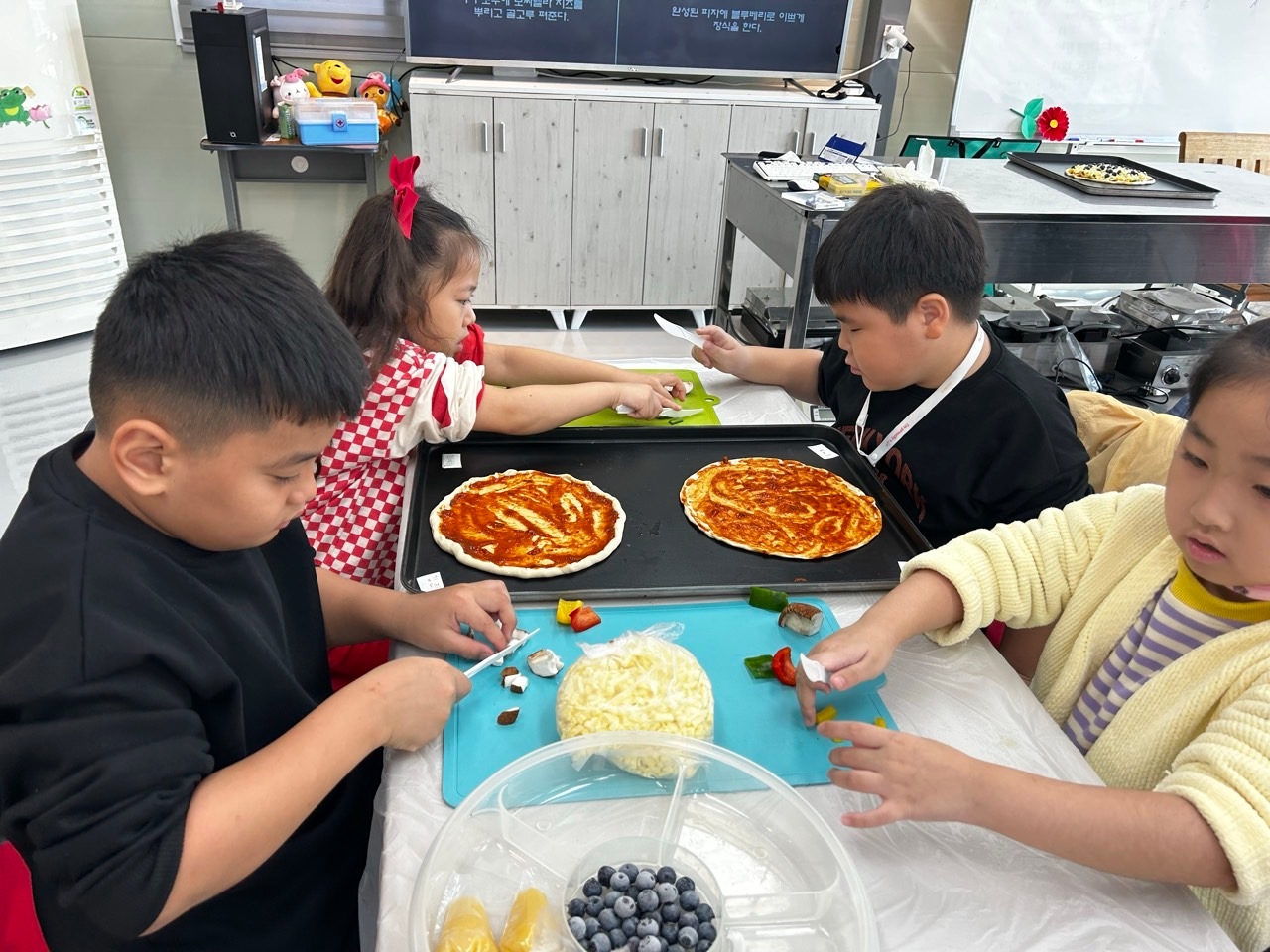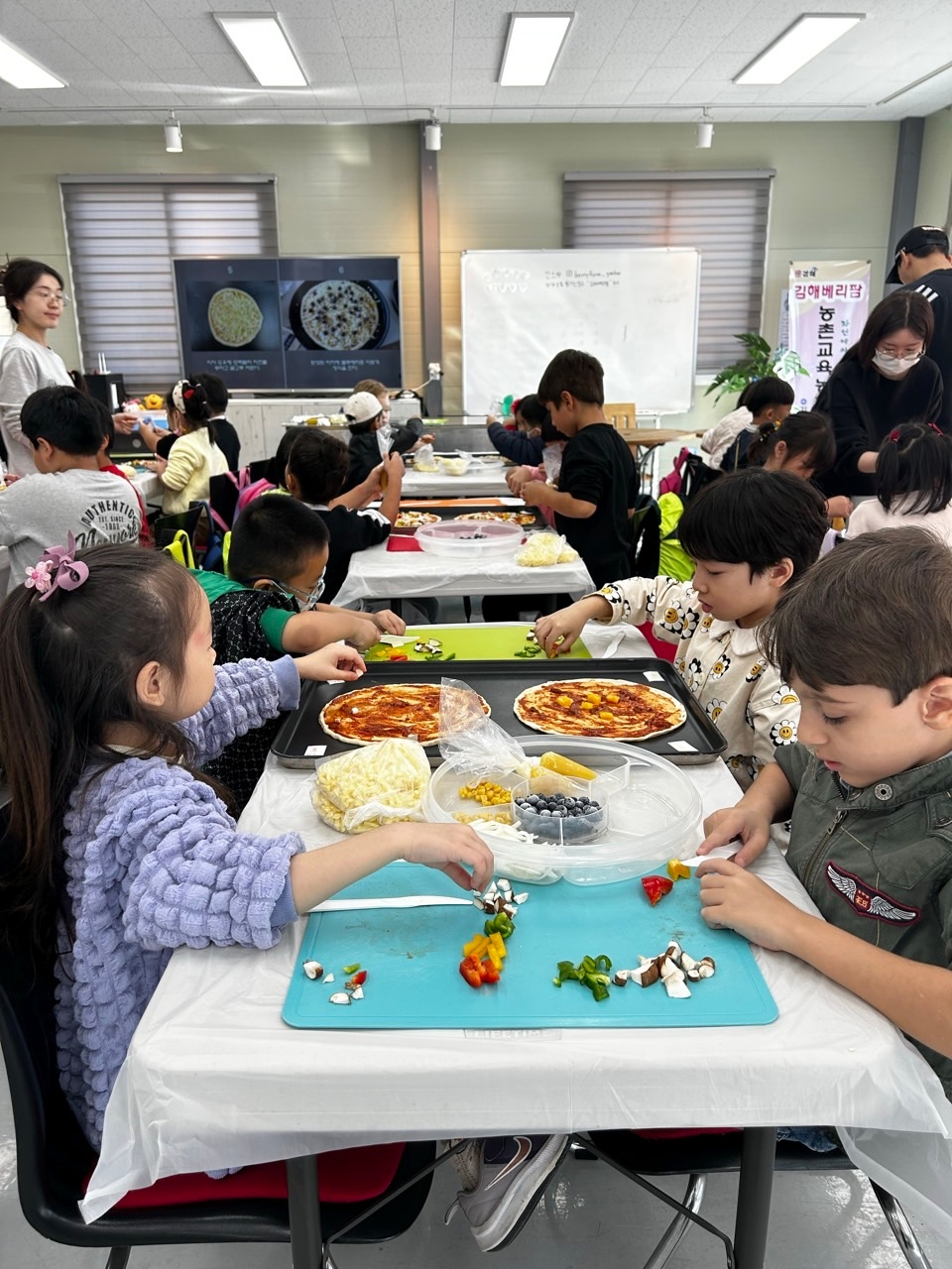 김해베리팜에서 블루베리피자를 만들어 먹고 블루베리 묘목도 심어부는 시간을 가졌습니다.